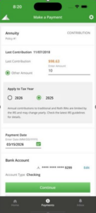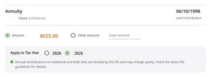 The Customer Portal and Mobile App enable customers to designate a contribution to their traditional and Roth IRAs for tax year 2025.